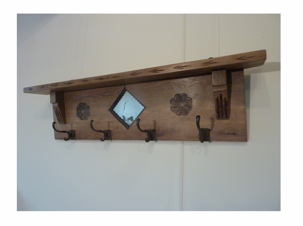 Opgeknapte kapstok met oud verweerd spiegeltje.